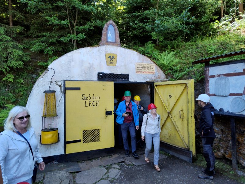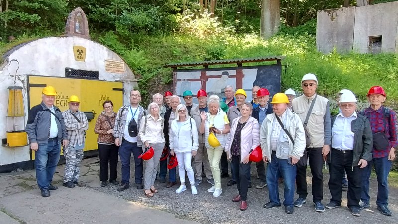 W dniu 14 czerwca 2025 r. nasza grupa wybrała się na wycieczkę do Nowej Rudy i okolic. Nasz autokar wysadził nas na rynku w Nowej Rudzie. Zwiedziliśmy rynek i okolice. Spacerkiem dotarliśmy do kultowej noworudzkiej kawiarni „Biała Lokomotywa”. Wybór serwowanych kaw i ciast był niesamowity. Po wzmocnieniu się kawą podjechaliśmy do głównego celu naszej podróży – Muzeum Górnictwa z Podziemną Trasą Turystyczną „Kopalnia Węgla Kamiennego w Nowej Rudzie”.