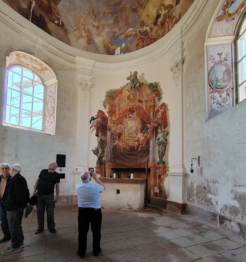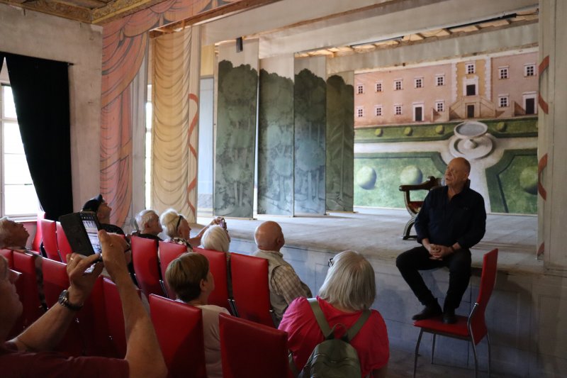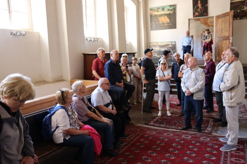 Następnym punktem programu było zwiedzanie Pałacu Gorzanów. Ten renesansowy pałac w Gorzanowie koło Bystrzycy Kłodzkiej to unikat w skali Europy Środkowej. Powstał w połowie XVII wieku. Prace prowadzili włoscy architekci, mistrzowie budowlani, a zlecił je właściciel Gorzanowa hrabia Johann Friedrich von Herberstein. Powstał tu piękny i chyba największy pałac na ziemi kłodzkiej, z ogrodami i parkiem oraz zabudowaniami gospodarczymi. W pałacu znajduje się ponad 100 pomieszczeń. W 1818 roku urządzono w nim salę teatralną. Naszą wycieczkę oprowadził osobiście właściciel Pałacu.